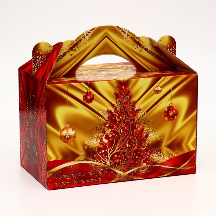 Коробка выполнена из качественных материалов, которые обеспечивают сохранность содержимого. Она имеет яркий и красочный дизайн, который отражает атмосферу Нового года.