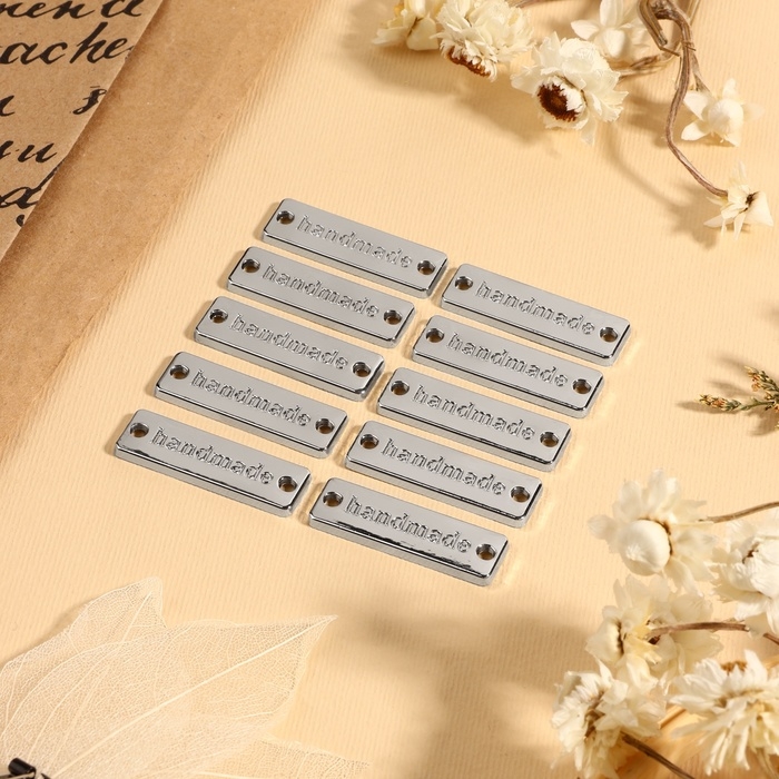 Набор нашивок из металла «Hand made», 3,2 × 1 см, 10 шт, цвет серебряный