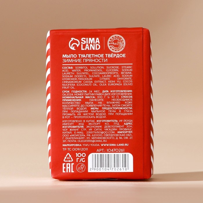 Новый Год. Мыло для рук кусковое Warm winter, 80 г, аромат зимних пряностей