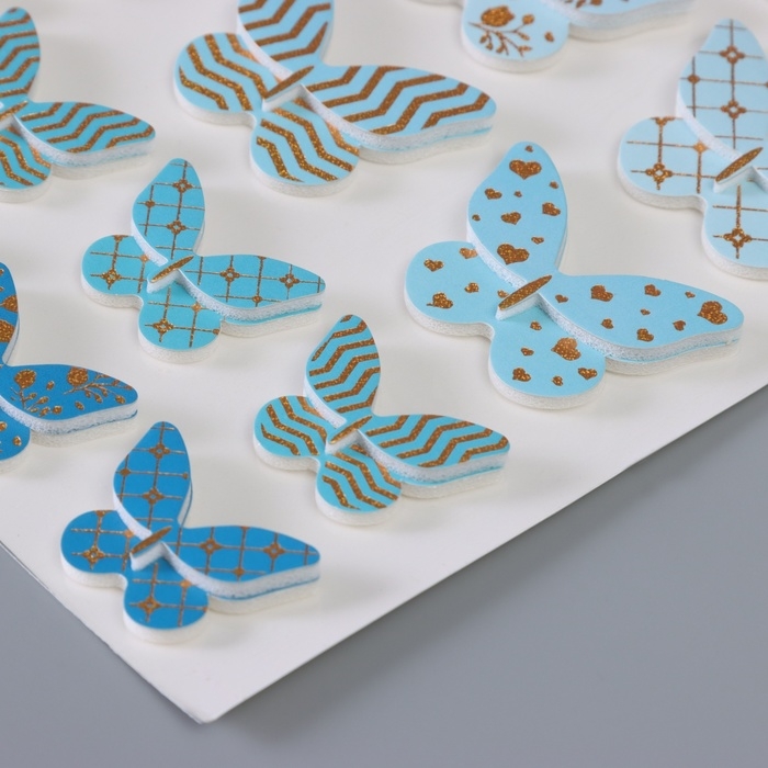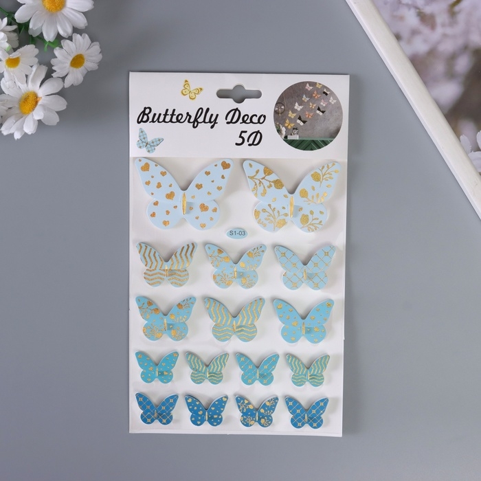 Наклейка интерьерная PVC "Рой бабочек" голубая 26х15,5 см