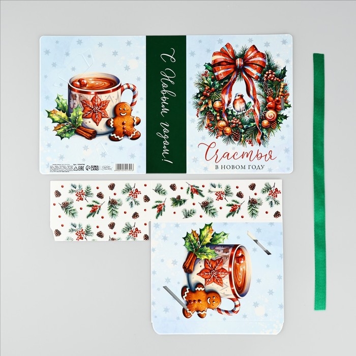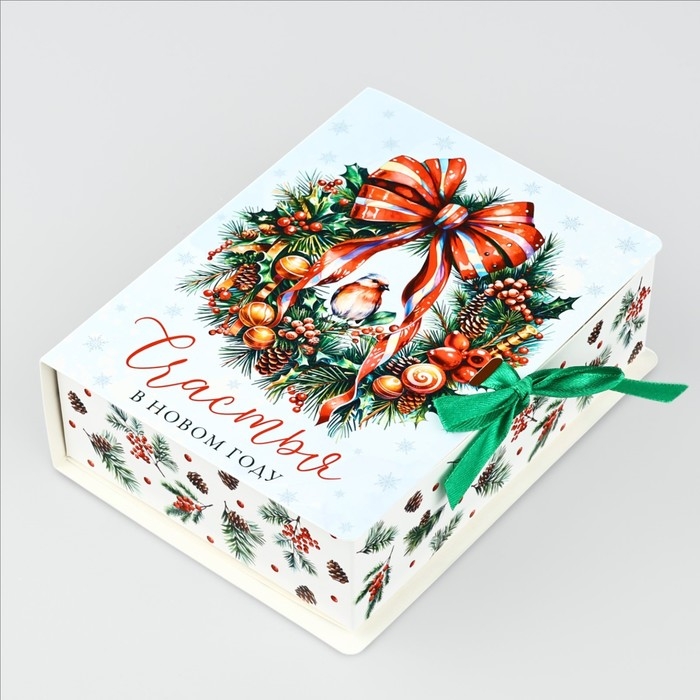 Складная новогодняя коробка-книга «Новогодний венок», 16,5 х 12,5 х 5 см, Новый год