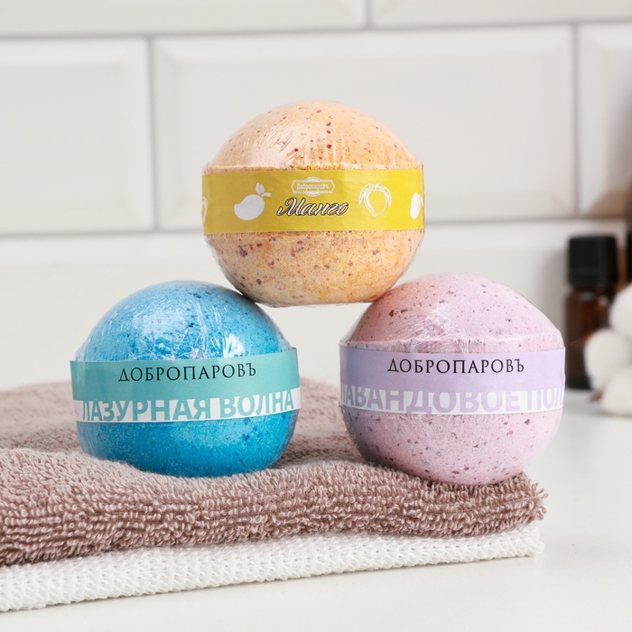 Набор бомбочек 3 шт в спайке "Манго, Лаванда, Лазурная волна" по 110 г