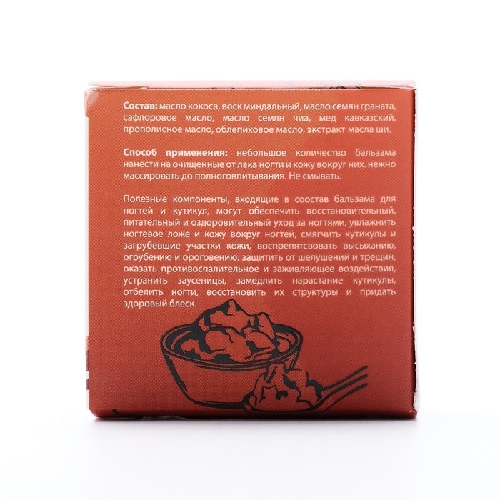 Состав: масло кокоса, воск миндальный, масло семян граната, сафлоровое масло, масло семян чиа, мед кавказский, прополисное масло, облепиховое масло, экстракт алоэ вера.