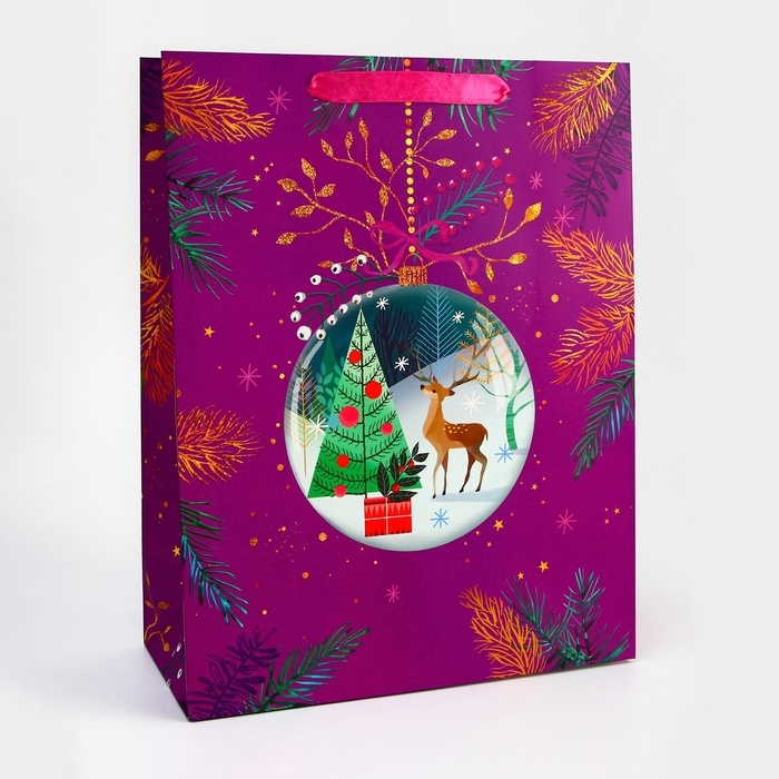 Пакет подарочный новогодний ламинированный "Стеклянный шар", 33 х 42,5 х 10 см.