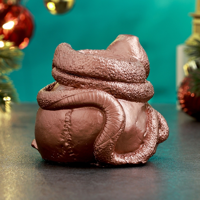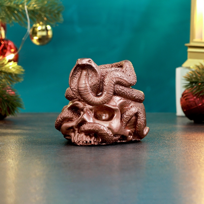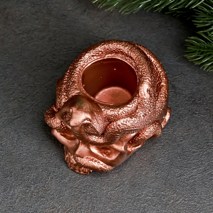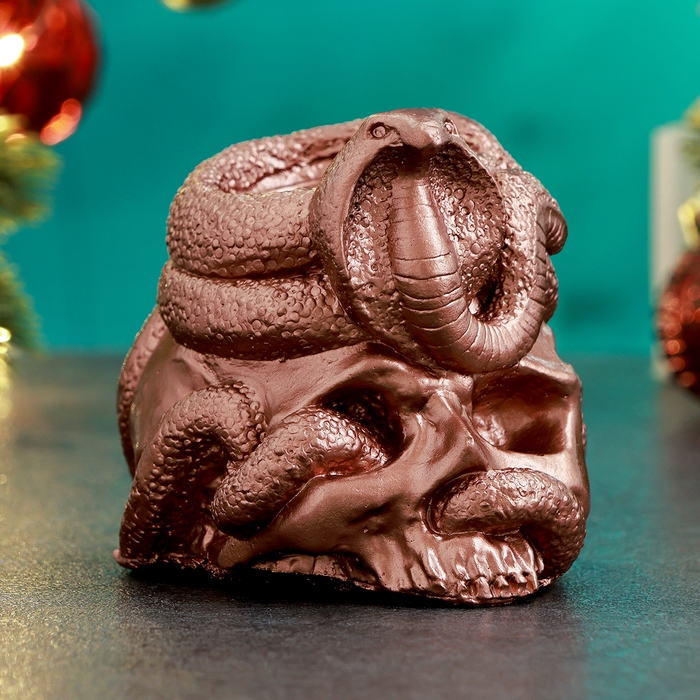 Новый год. Символ 2025. Подсвечник новогодний "Череп со змеей" 9см, медь