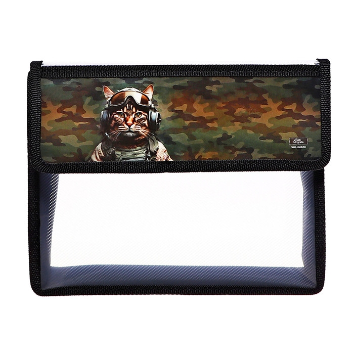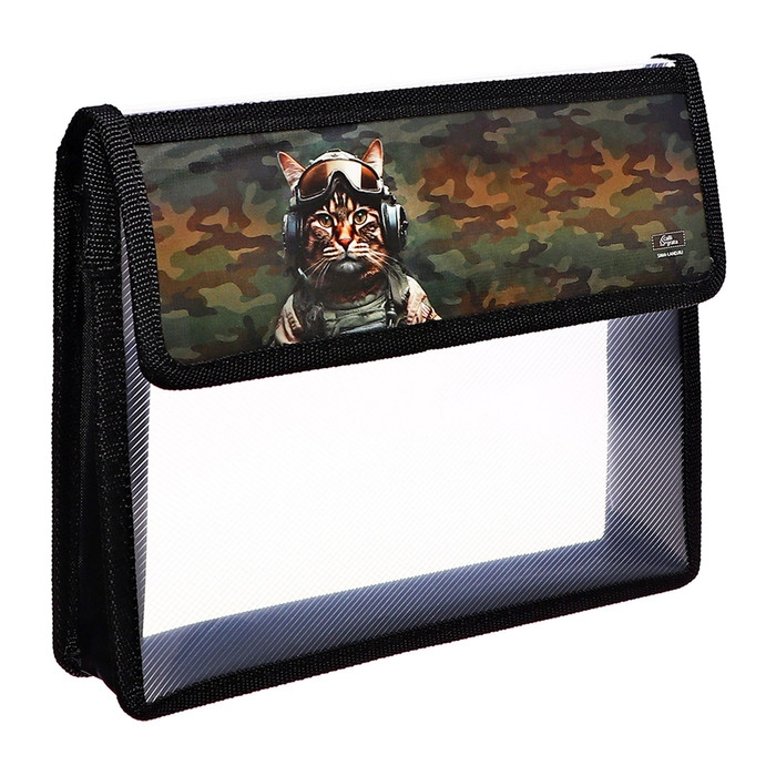 Папка для тетрадей А5 (230 х 190 х 50 мм), с клапаном на липучке, пластик/текстиль, Calligrata, "Кот камуфляж"