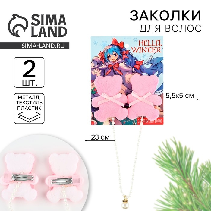 Заколки мишки новогодние «Привет зима», на Новый год, набор 2 шт, 5 х 4 см