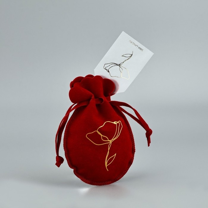 Мешок замшевый «Цветок», красный, тиснение, 9 × 12 см