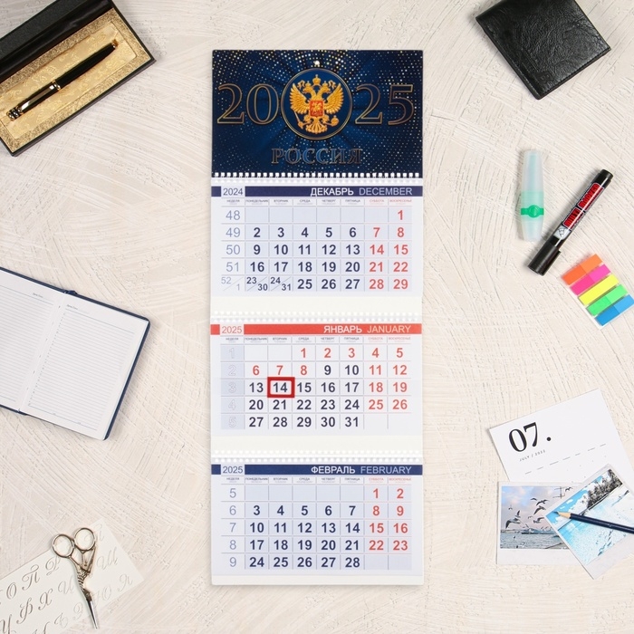 Календарь квартальный трио "Россия" 2025 год, 29,7 х 75 см