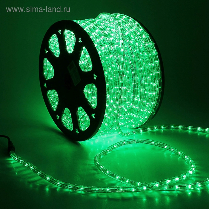 Световой шнур Luazon Lighting 13 мм, IP65, 100 м, 36 LED/м, 220 В, 2W, постоянное свечение, свечение зелёное