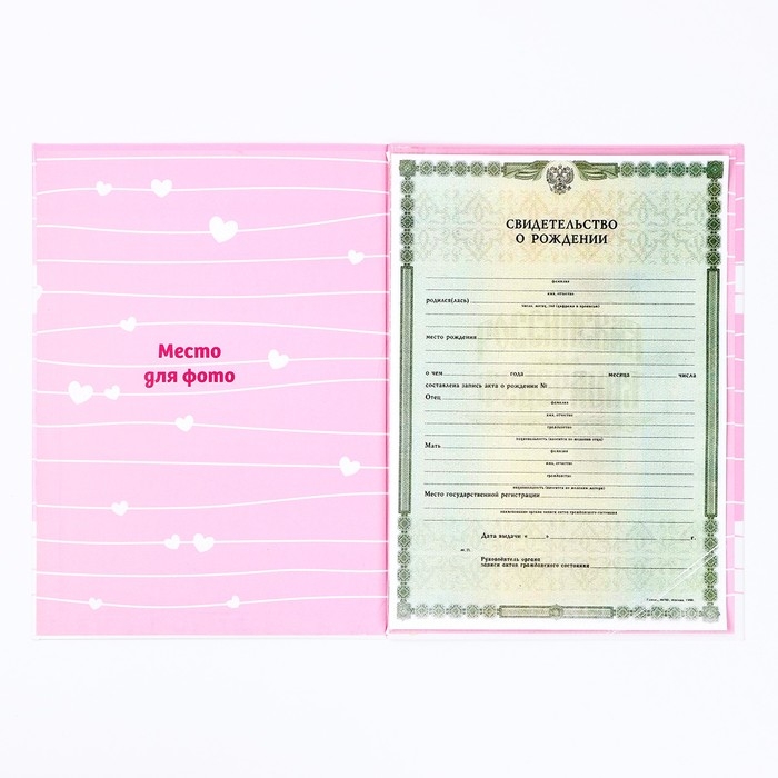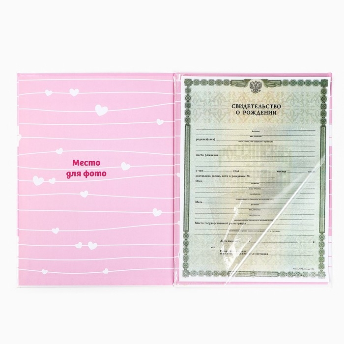 Папка для свидетельства о рождении "Наша малышка", розовая для девочки, 23,1х30,7см