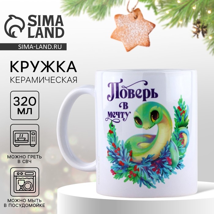 Кружка новогодняя керамическая «Поверь в мечту», 320 мл, цвет белый