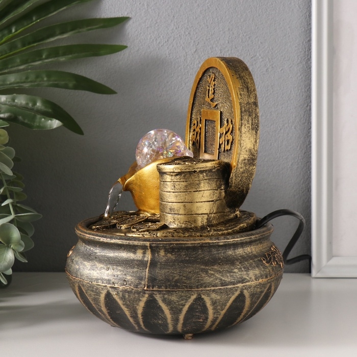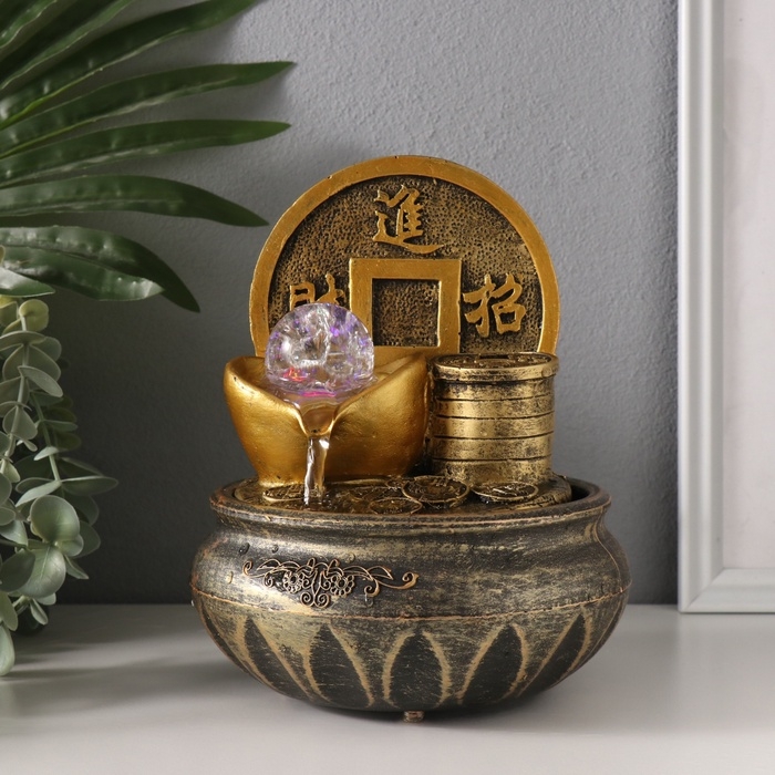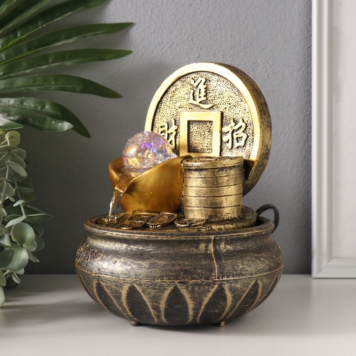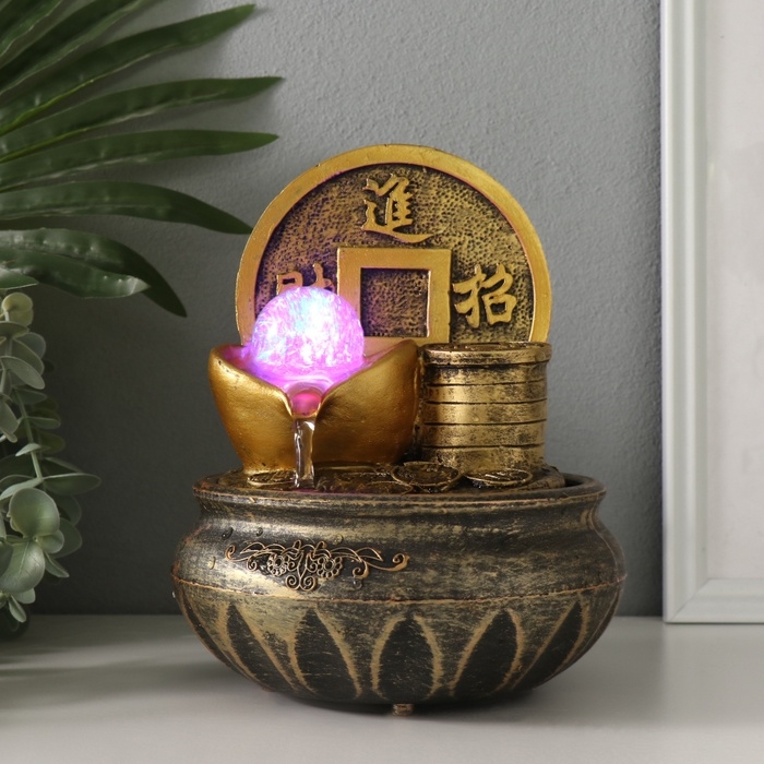 Фонтан настольный от сети, подсветка "Монета. Богатство" 16х16х20 см