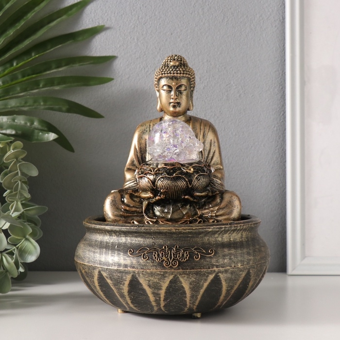 Фонтан настольный от сети, подсветка "Будда перед лотосом" 16х16х22 см