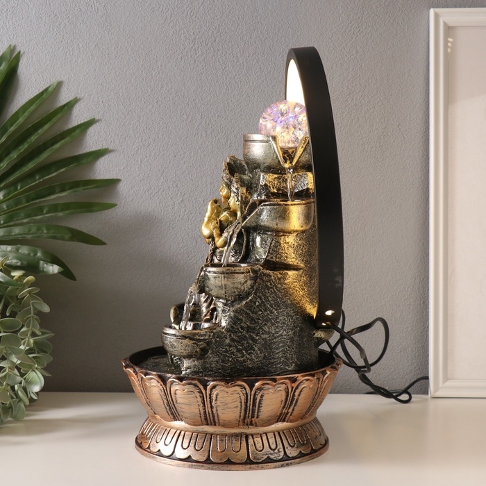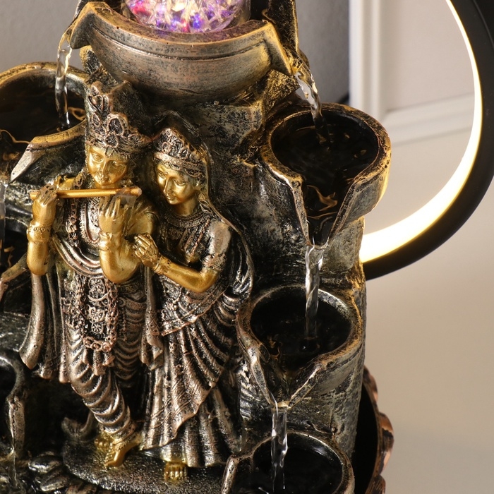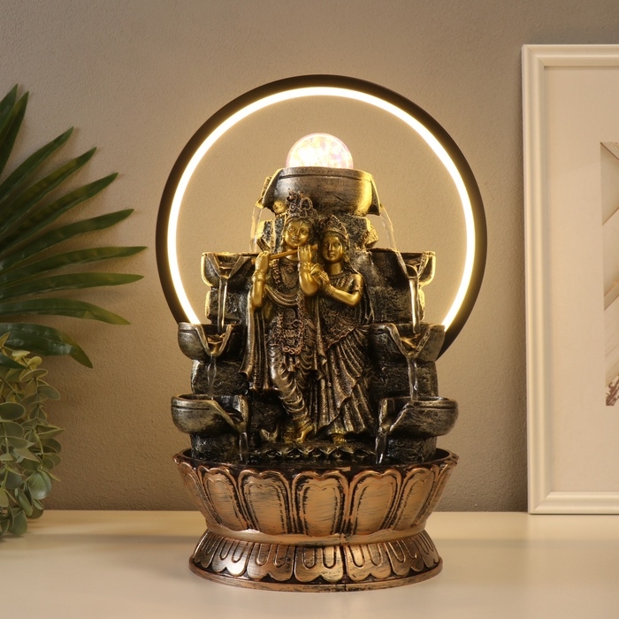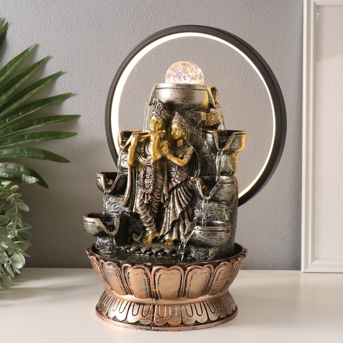 Фонтан настольный полистоун от сети, подсветка "Шива и Парвати" золото 25х20х34 см