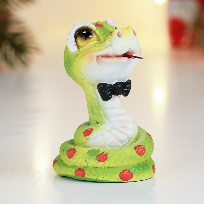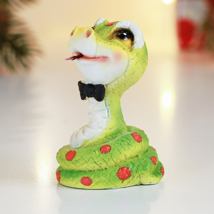 Новый год. Символ 2025. Фигура "Змейка с бабочкой на шее" 4х4х6см, цветная