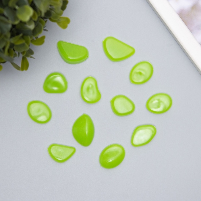Декор для творчества пластик светится в темноте "Зелёные камешки" набор 12 шт