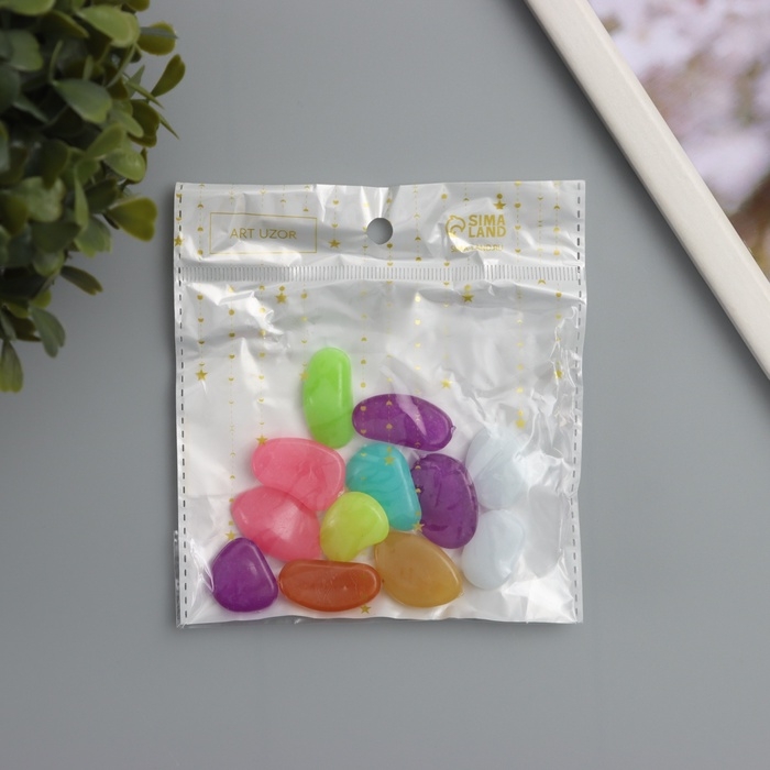 Декор для творчества пластик светится в темноте "Разноцветные камешки" набор 12 шт