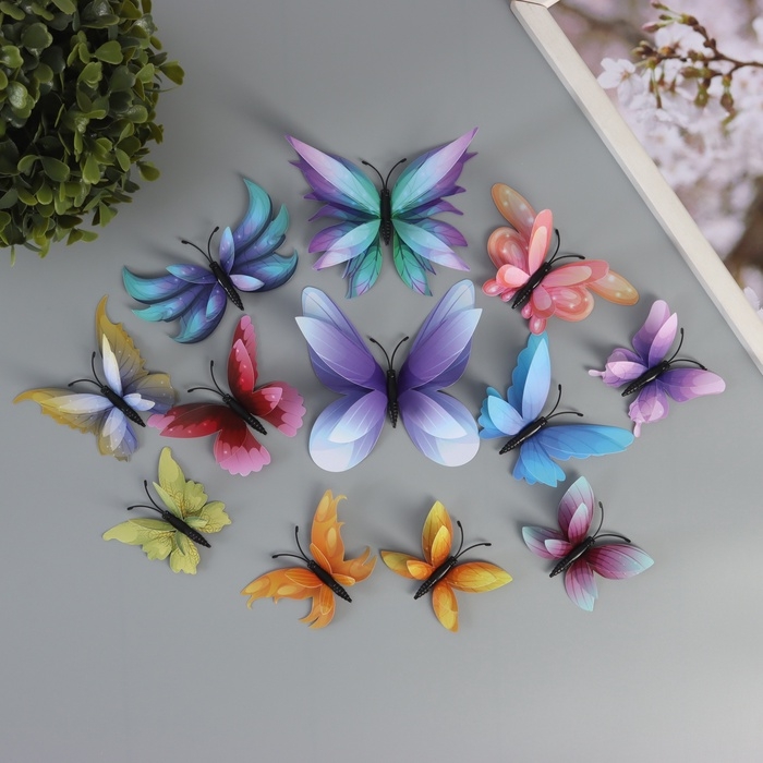 Магнит пластик "Бабочки градиентные 2D" набор 12 шт