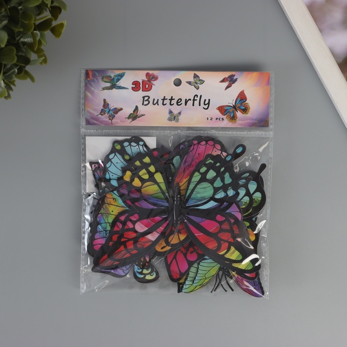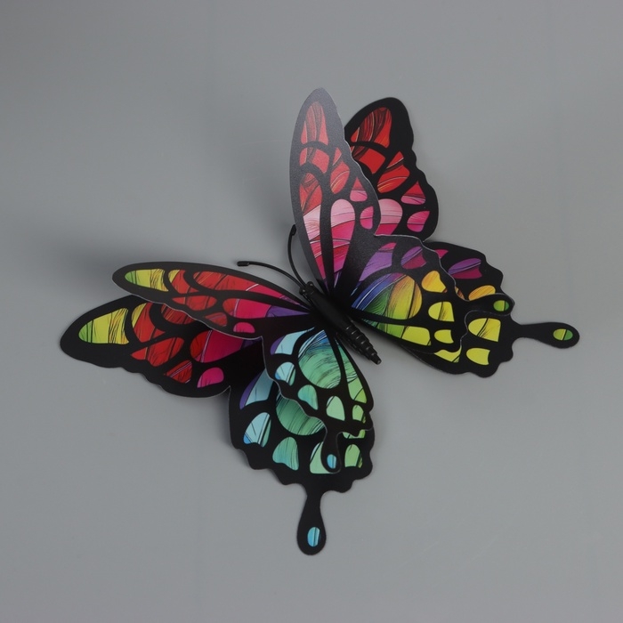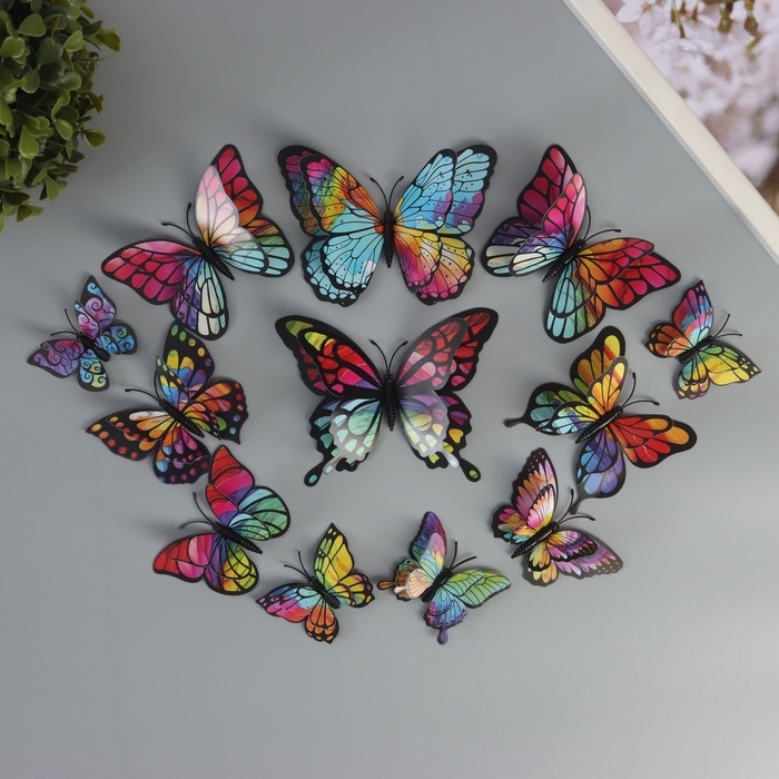 Магнит пластик "Бабочки с радужной расцветкой" набор 12 шт 6; 8; 10; 12 см
