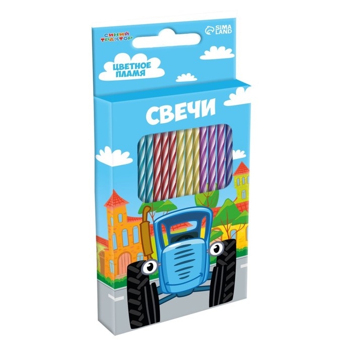 Набор свечей в торт 6 штук, с цветным пламенем, Синий трактор