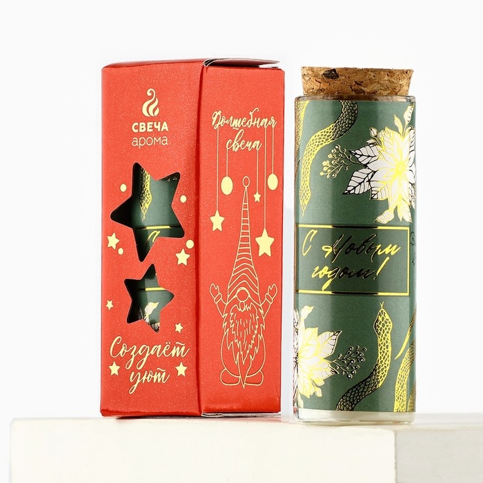 Свеча новогодняя «С новым годом», на Новый год, аромат зеленый чай, 9 х 3,5 см