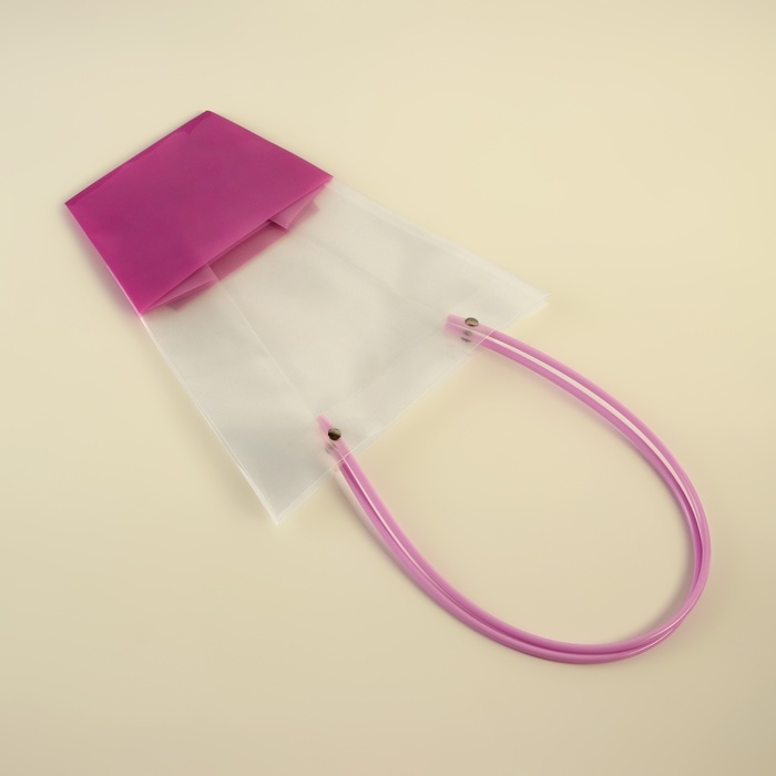 Сумка размером 26х24х12 см отличается лёгкостью и удобством в использовании. Элегантные ручки обеспечивают комфортное перенесение, а прочные швы и устойчивое дно гарантируют надёжную фиксацию букета. Прозрачный материал позволяет цветам оставаться в центре внимания, подчёркивая их естественную красоту и свежесть.