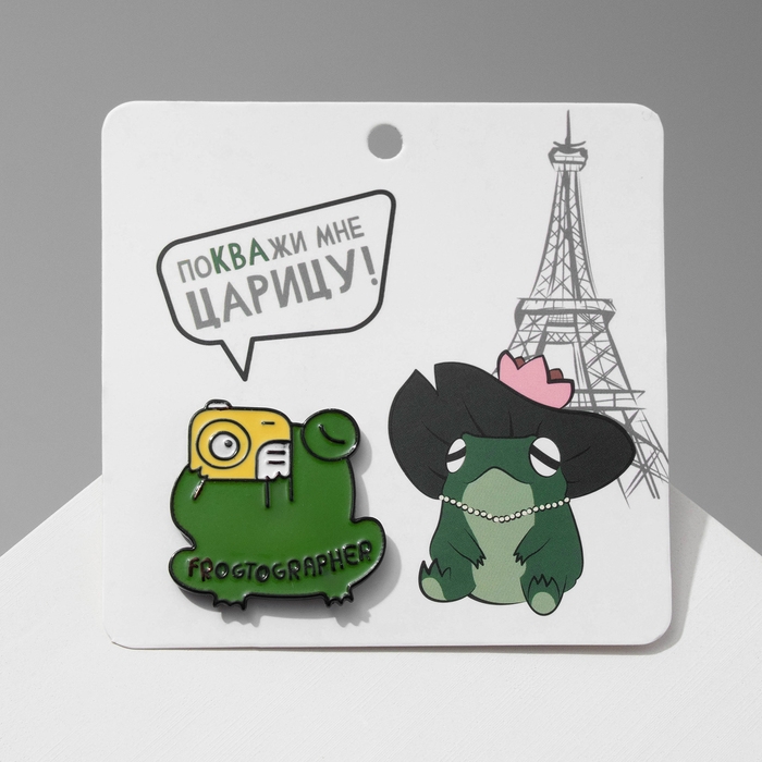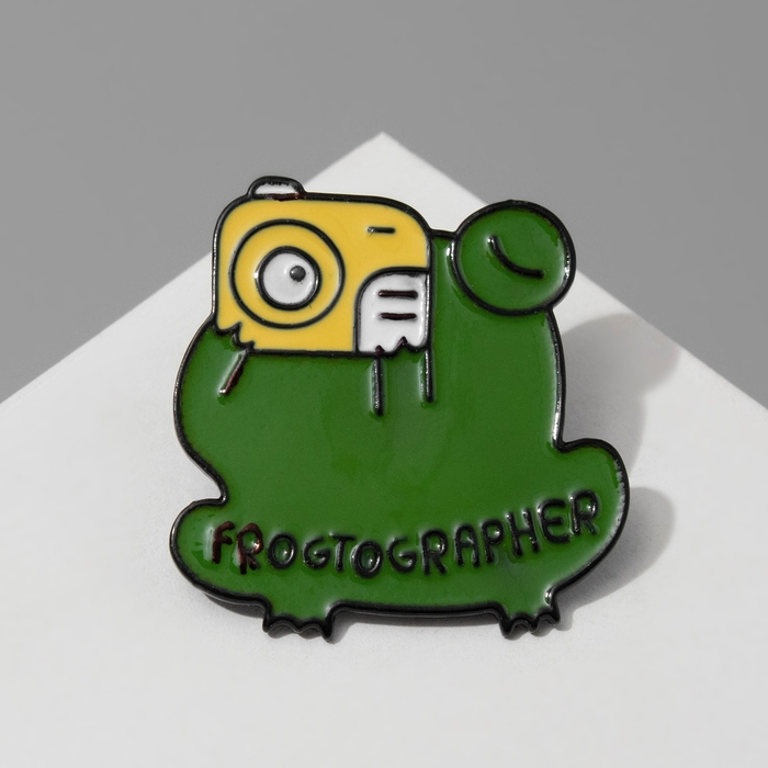 Значок "Лягушка" фотограф, цвет зелёный в чёрном металле