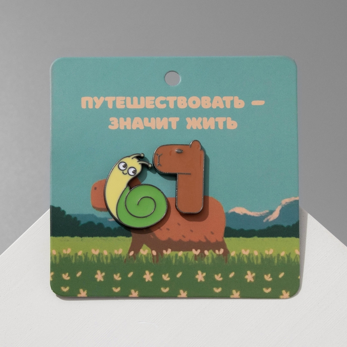 Набор значков (2шт) "Зоо" улитка и капибара, цветной в чёрном металле
