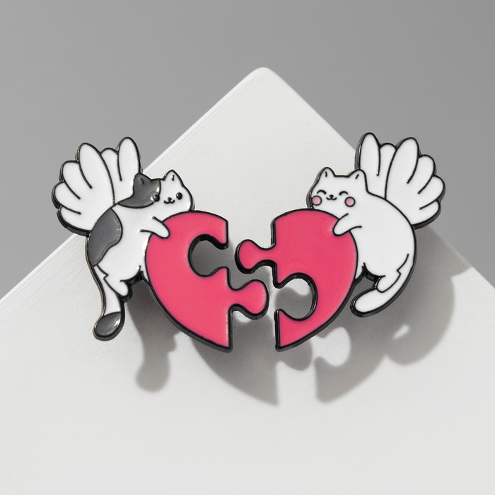 Значки-неразлучники "Кото-ангелы" пазл, цветные в чёрном металле