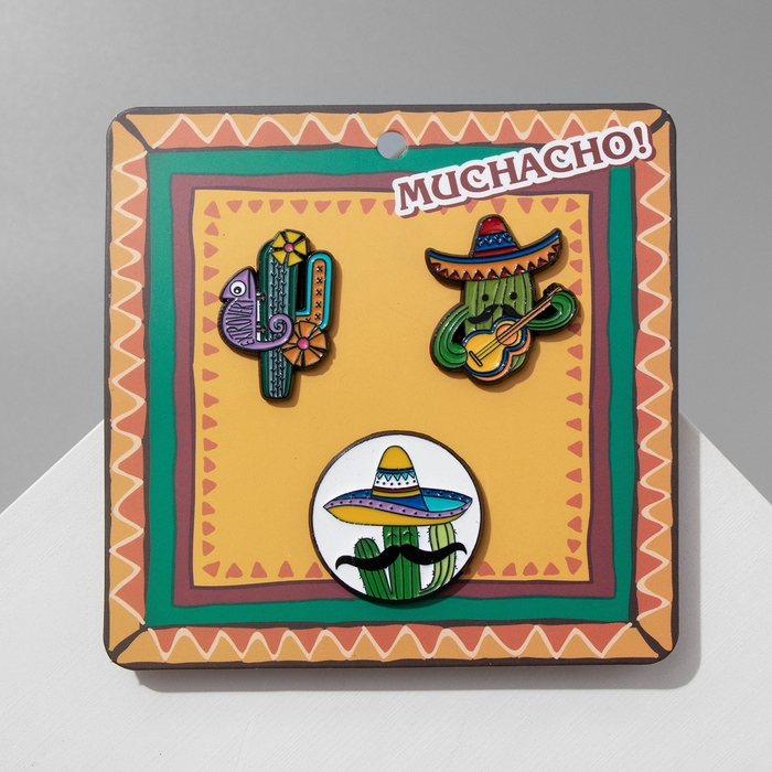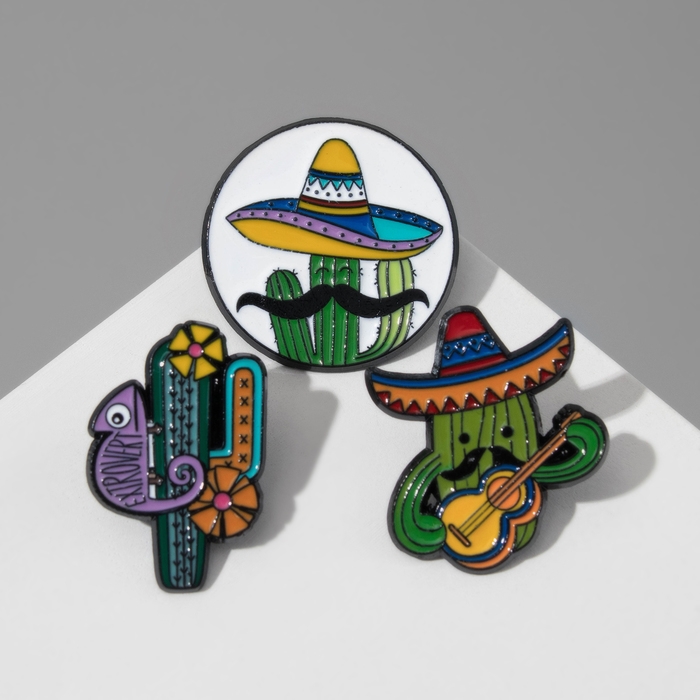 Набор значков (3шт) "Кактусы", цветные в чёрном металле
