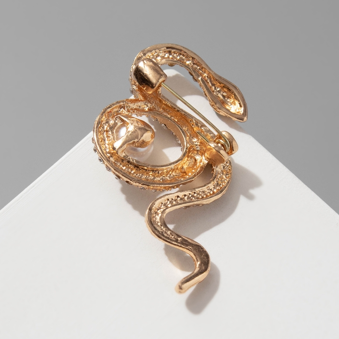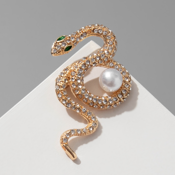 Новый год! Символ года 2025! Брошь "Змея" вокруг жемчужины, цвет бело-зелёный в золоте