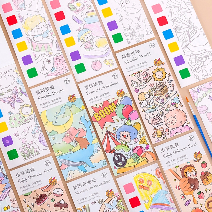 Водная раскраска «Закладки», 10 листов, кисточка, виды МИКС