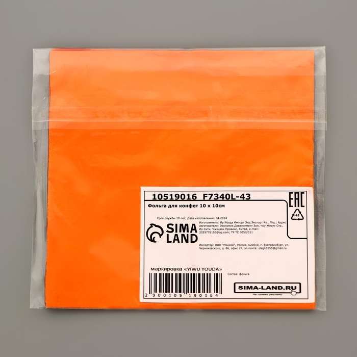 Фольга для конфет 10*10см 100шт., оранжевая