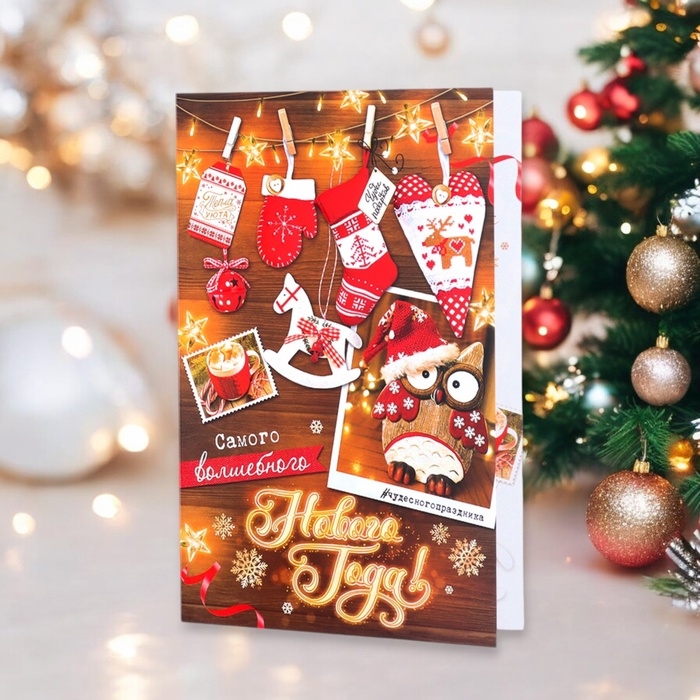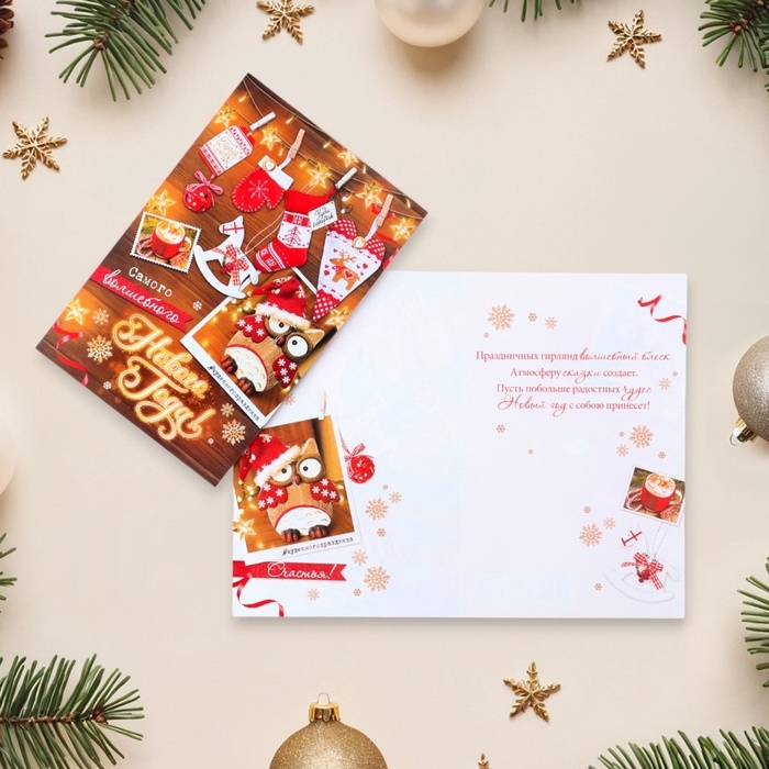 Открытка "Самого волшебного Нового Года!" глиттер, конгрев, 12,5 х 19,4 см