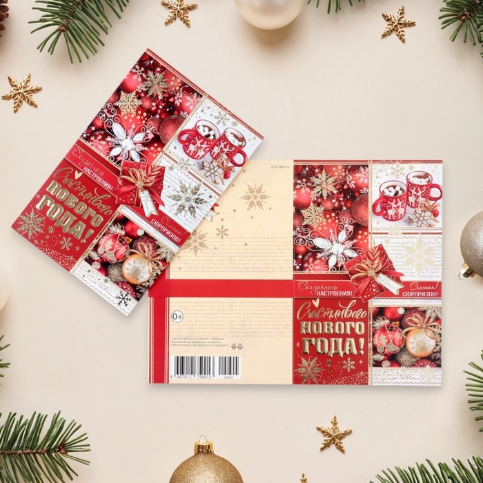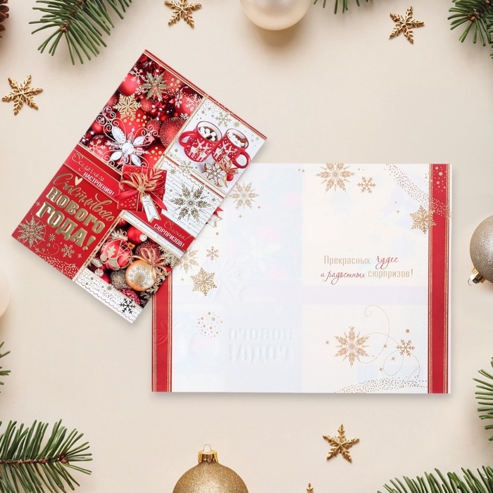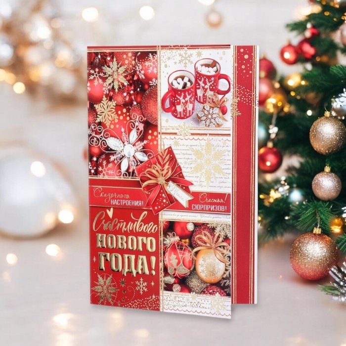 Открытка "Счастливого Нового Года!" конгрев, тиснение, красный фон, 12,5 х 19,4 см