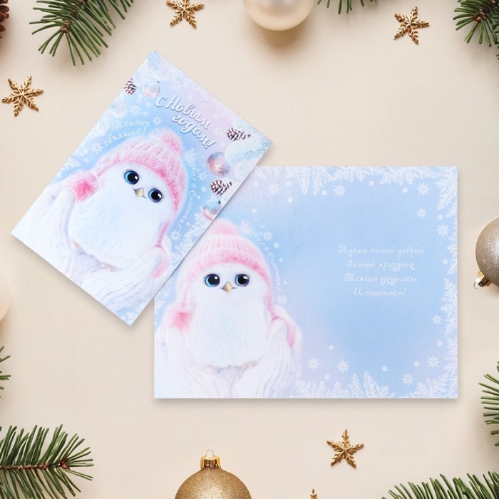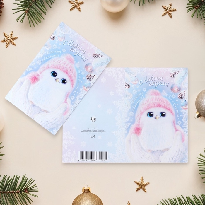 Открытка "С Новым Годом!" глиттер, конгрев, птичка, 12,5 х 19,4 см