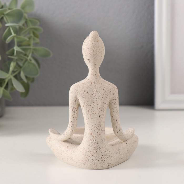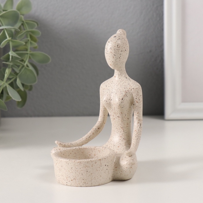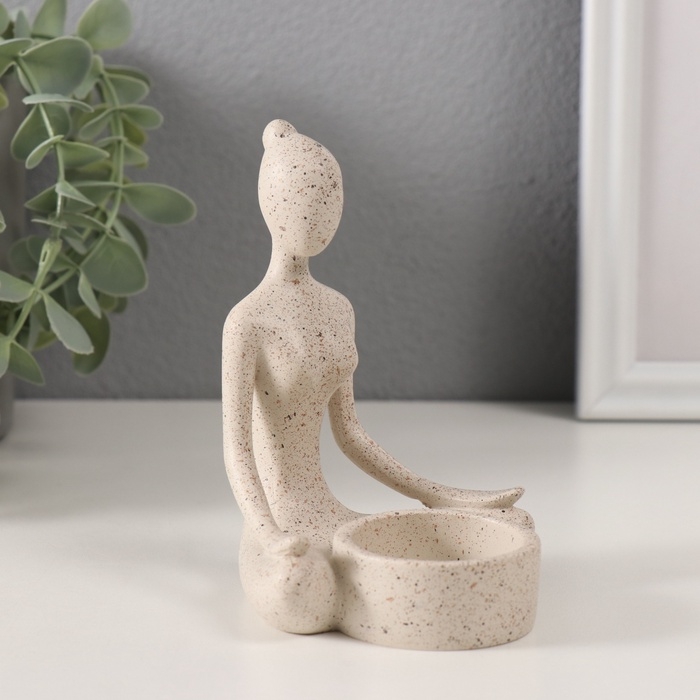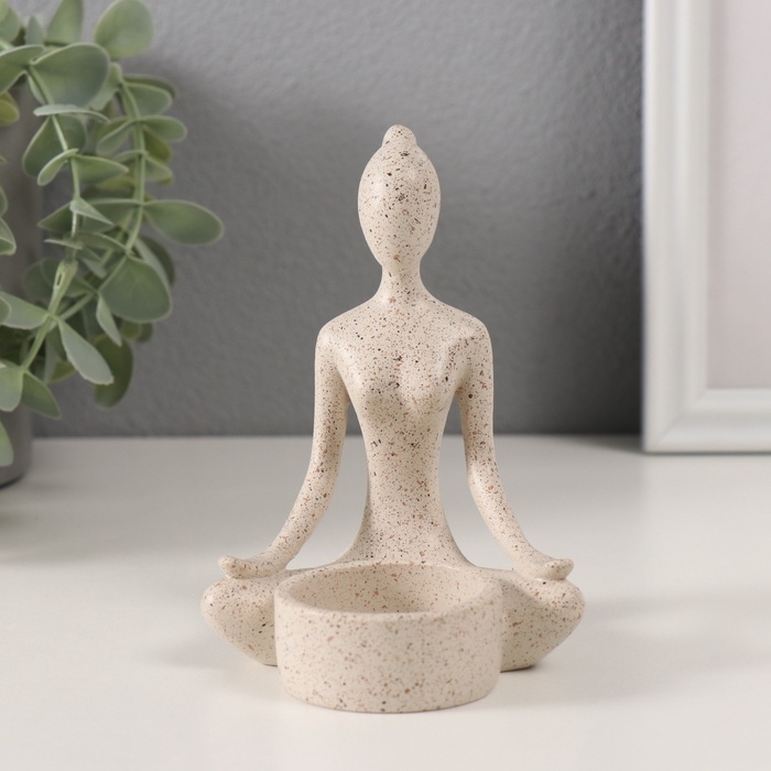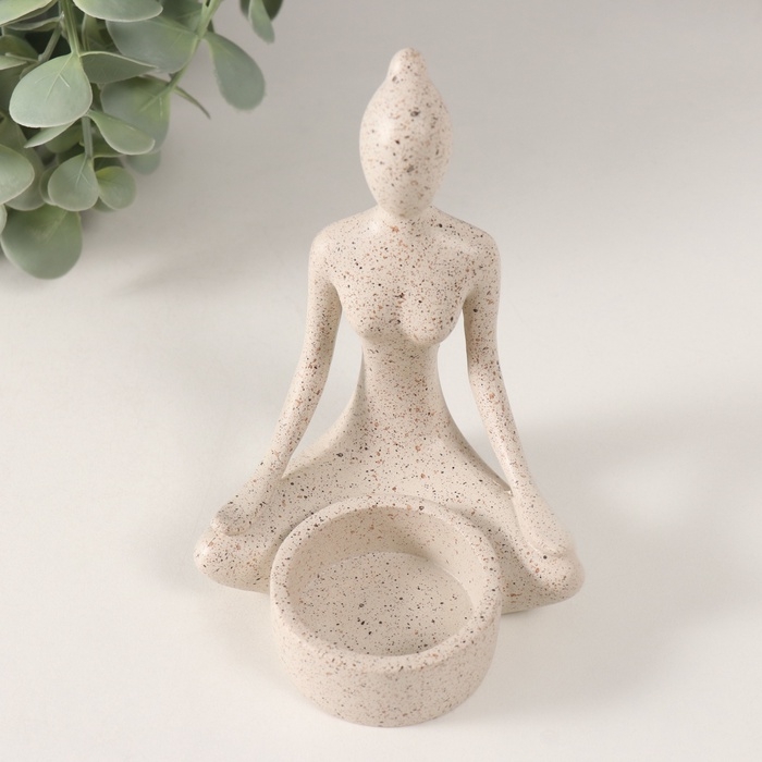 Подсвечник полистоун на 1 свечу "Девушка. Поза лотоса" белый в крапинку 8,3х8,5х11,7 см