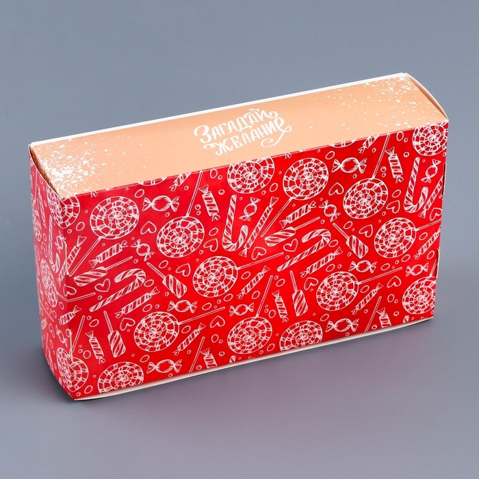 Новый год. Коробка для 5 эклеров подарочная, новогодняя упаковка "Исполнения желаний!", 25,2 х 15 х 6,6 см.