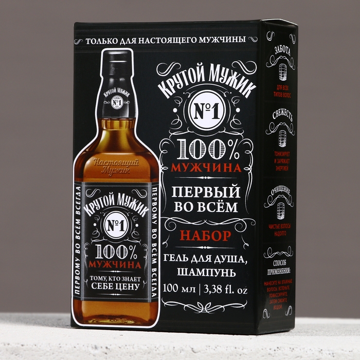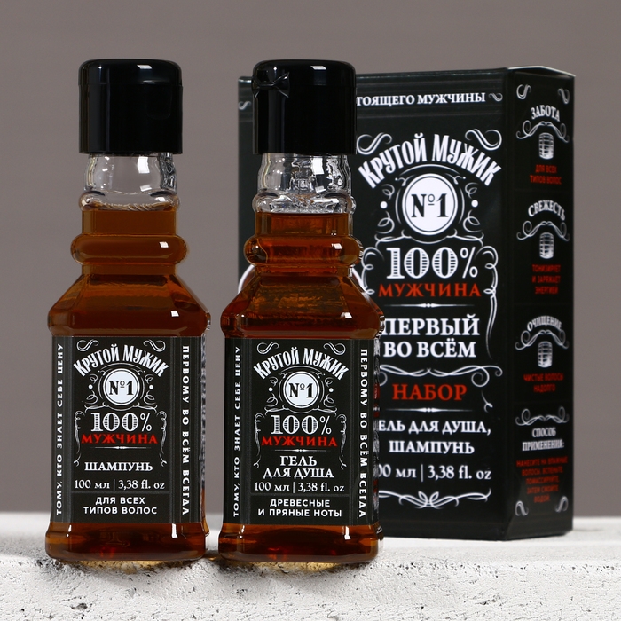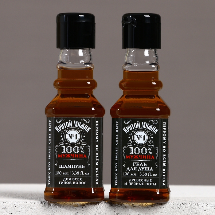 Подарочный набор косметики «Крутой мужик», гель для душа и шампунь для волос во флаконах виски, 2 х 100 мл, Новый Год