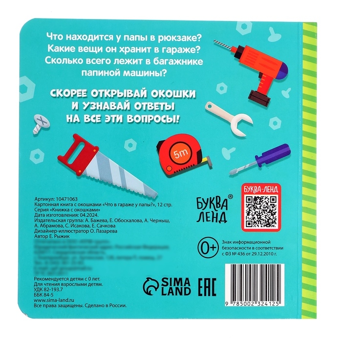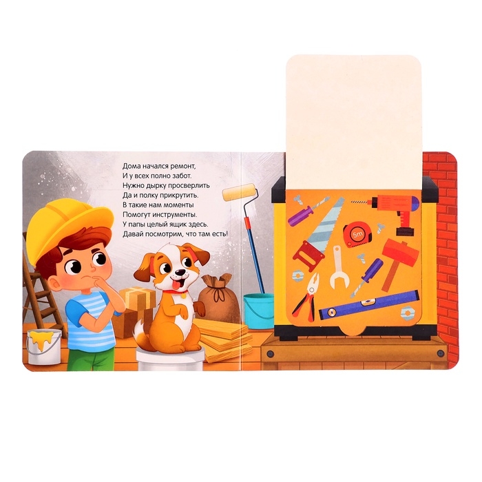 Картонная книга с окошками «Что в гараже у папы?», 12 стр.
