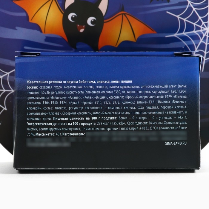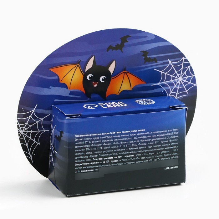 Хэллоуин Жевательная резинка в коробке "Летучая мышь", 40 г