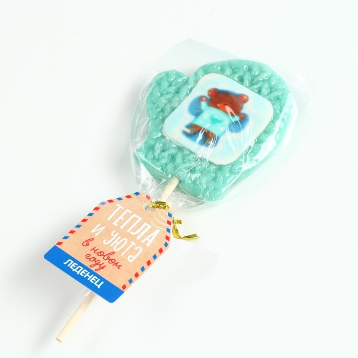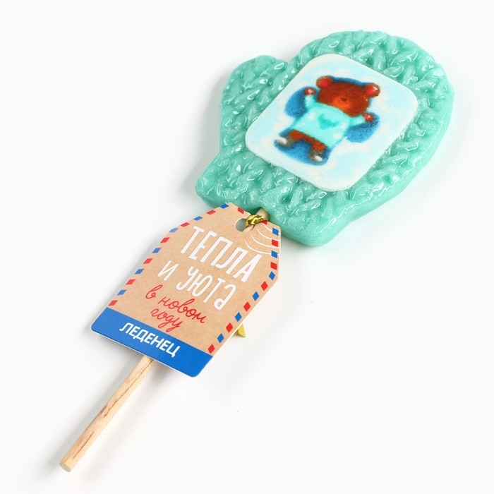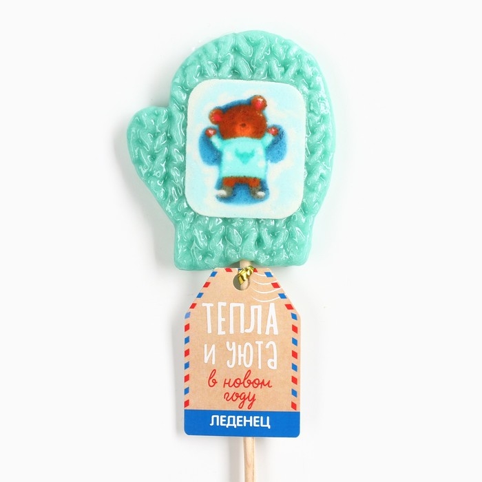 Новый год! Леденец на палочке, варежка, с вафельной картинкой «Тепла и уюта», 35 г
