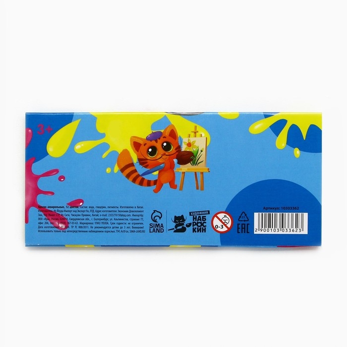 Акварельные краски 12 цветов Наброскин, упаковка картон