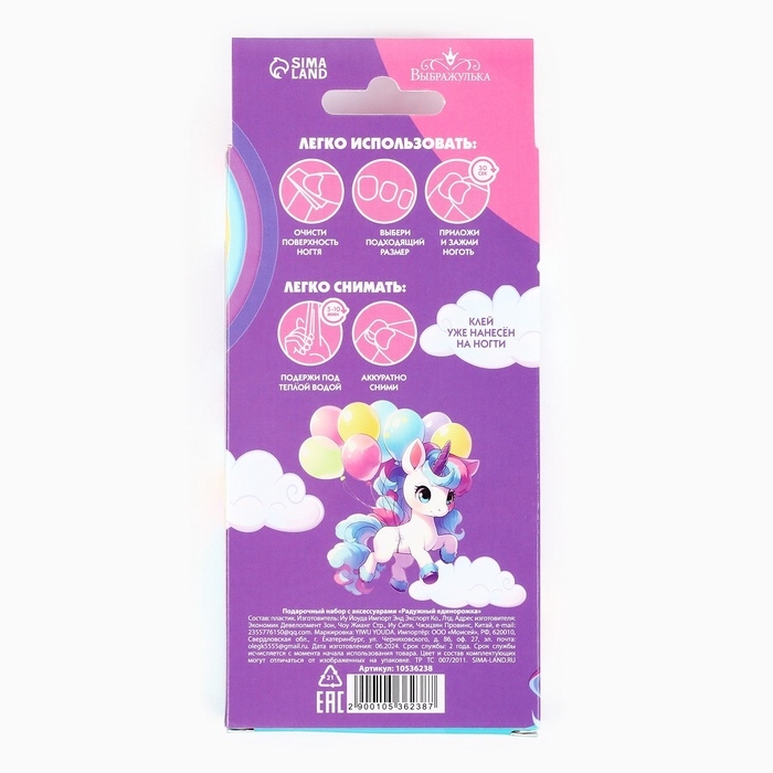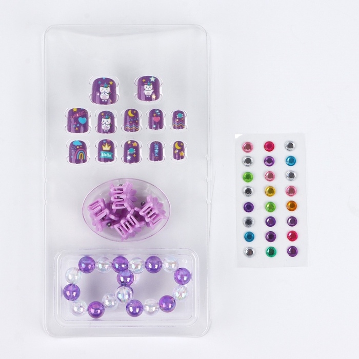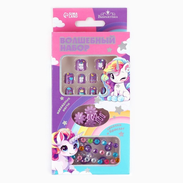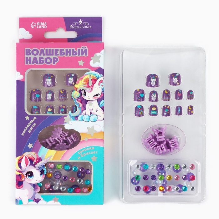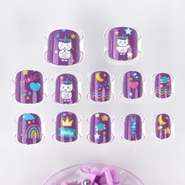 Детские накладные ногти «Радужный Единорожка», 12 шт, набор с браслетом и заколками