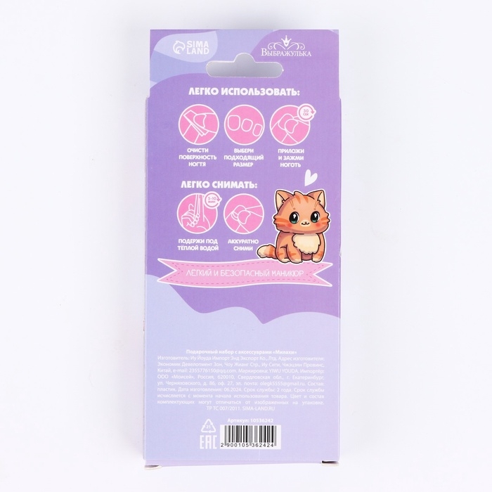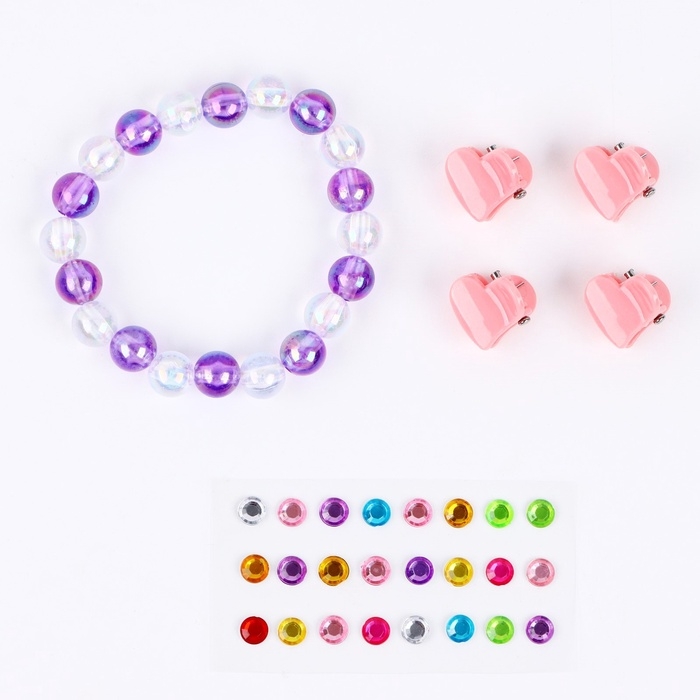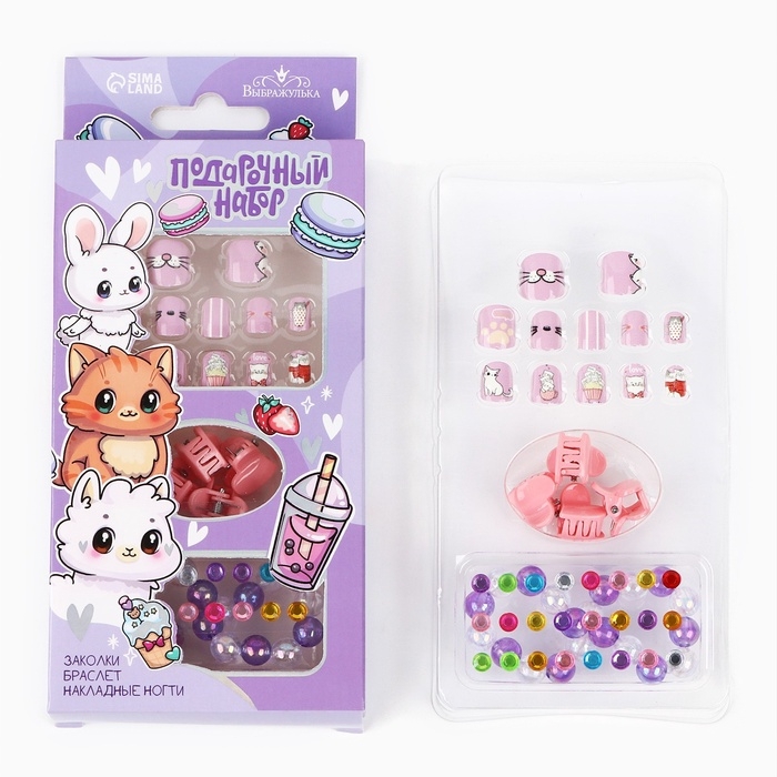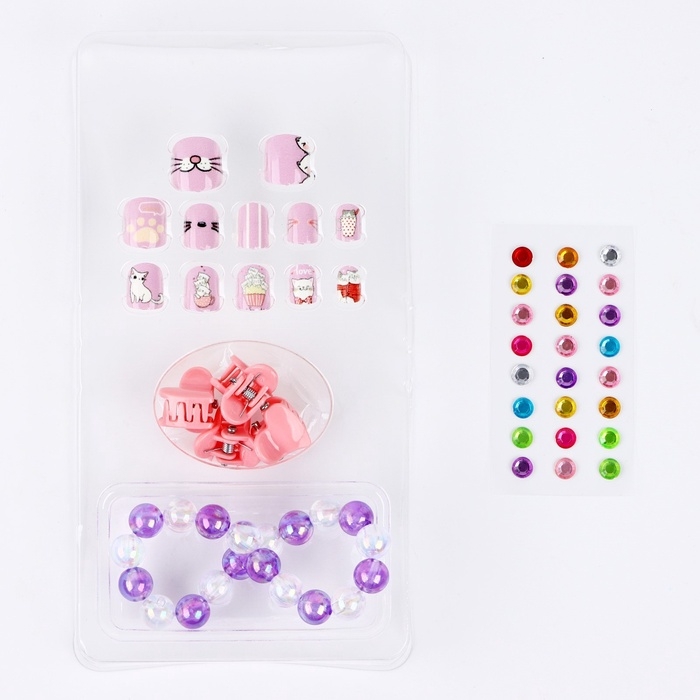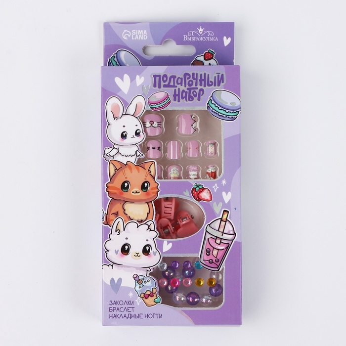 Детские накладные ногти «Милахи», 12 шт, набор с браслетом и заколками