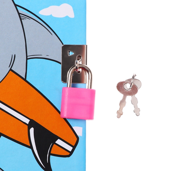 Записная книжка подарочная, 45 листов, линия, на замке, на гребне, Акула (17,8х13см)