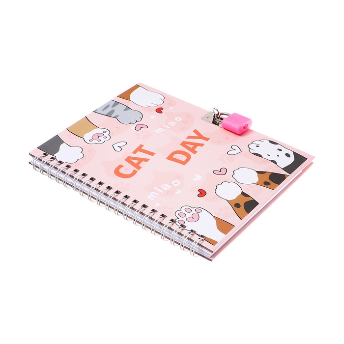 Записная книжка подарочная, 45 листов, линия, на замке, на гребне, Лапки (17,8х13см)