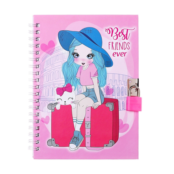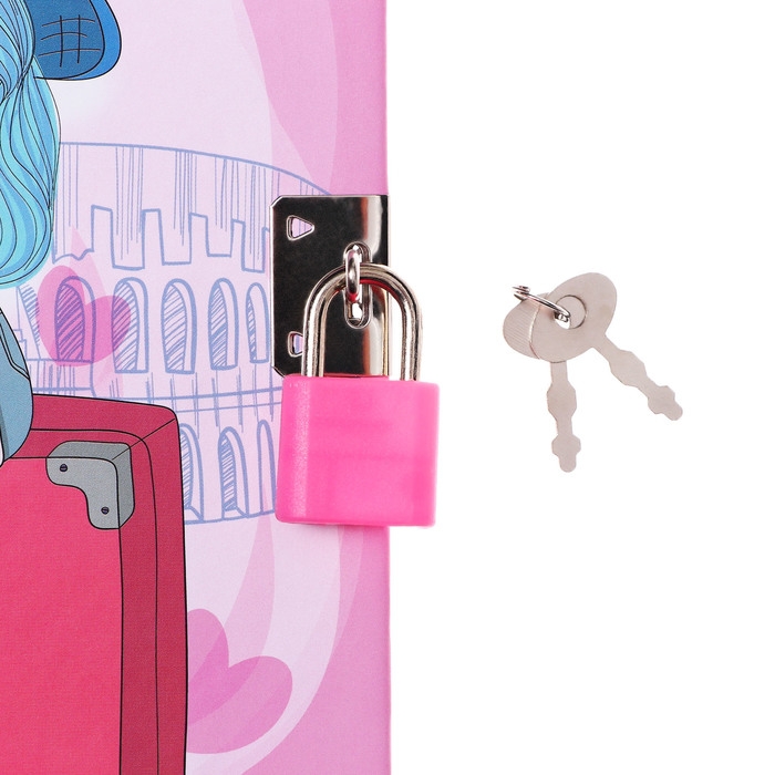 Записная книжка подарочная, 45 листов, линия, на замке, на гребне,Путешественница(17,8х13см) 10549