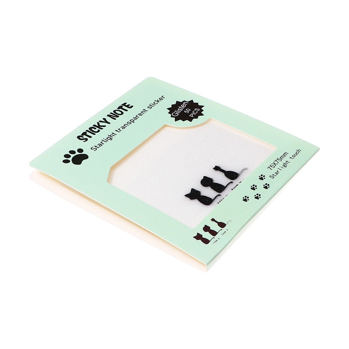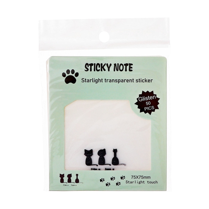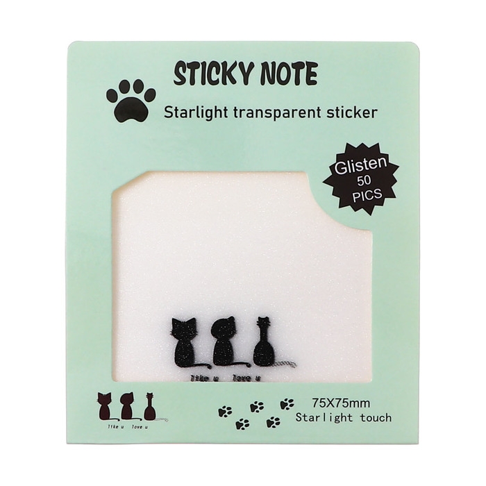 Блок с липким краем 75мм х 75мм 50л пластик прозрачные с блестками Кошки